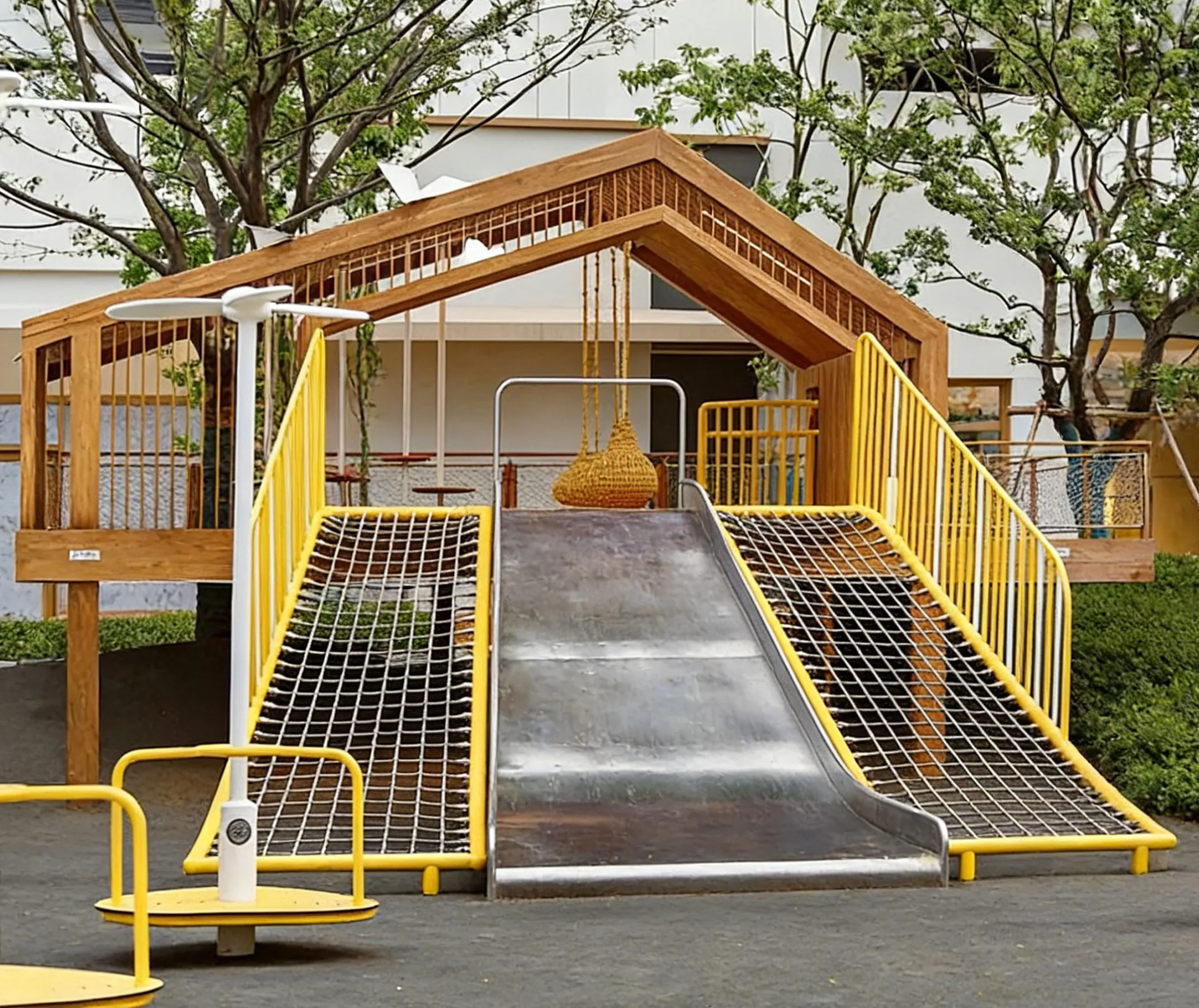 Used in the parent-child amusement space in the community, it adapts to the convenience demand of "playing downstairs", selects small and easy-to-maintain expansion module combinations, such as small slides, swings, climbing nets, etc., without complex maintenance. At the same time, it sets up a parent rest area, allowing parents to achieve neighborhood communication while accompanying their children to play, and build a harmonious community atmosphere. A high-end community has created a "starry sky theme" amusement area using this series of equipment, and the maintenance cost is 60% lower than that of traditional equipment, which has been widely praised by owners.